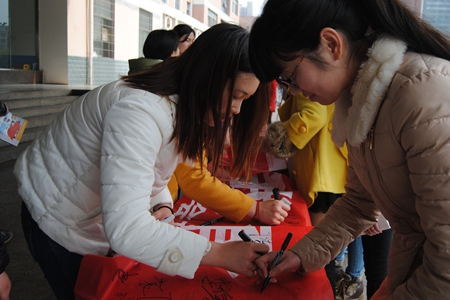 在学习雷锋纪念日举办这次签名活动,非常有意义。志愿者希望同学们能通过弘扬雷锋精神,从身边的小事做起,共同促进和推动文明校园的建设。(杨晴玲)