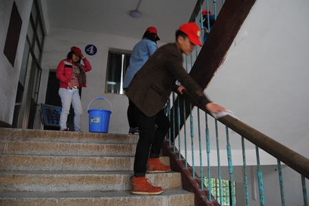 三月春风处处留,雷锋精神在心中。为弘扬雷锋精神,14市营一班开展学雷锋活动:清扫主教楼。活动在团支书的带领下开展的井然有序,同学们分工明确,互帮互助,不多时便将教室走廊、地板及垃圾、墙壁污痕清扫干净。