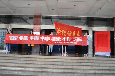 3月14日, 14电商班来到金谷大市场开展学雷锋活动,3月18日,由14会6班组织的学雷锋活动于在学校后门大街展开。同学们分工明确,活动有条不紊进行,各位同学热情十分高涨。
