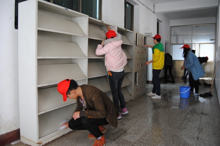 为弘扬时代雷锋精神,3月19日,财经贸易系13级财管2班的同学们在团支部的带领下义务打扫图书馆。