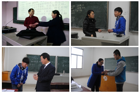 每堂课上课之前,财贸系学生会都会代表同学们为任课老师送上一杯热水,并表达对老师的感谢。通过这次活动,极大地激发了同学们对老师的感恩之情,使同学们学习态度更加积极,师生关系更加融洽。(王海超)