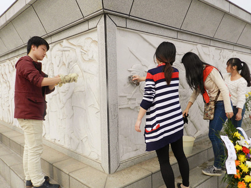 清明祭英烈,共铸中华魂。今年是中国人民抗日战争胜利70周年,为引导党员干部自觉培育和践行社会主义核心价值观,深切缅怀为创立、捍卫、建设新中国而英勇牺牲的革命先烈,4月3日,建艺系在党总支书记龙玉林、学生党支部书记伍琳带领下,全体学生党支部成员来到娄底市革命烈士陵园开展“祭英烈”清明扫墓活动。