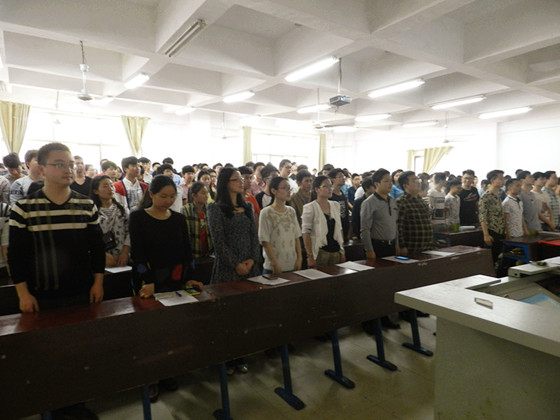 “起来,不愿做奴隶的人们……”在庄严的国歌声中活动正式开始。首先由系学工主任伍琳宣读活动倡议书,向在场师生阐释了此次活动的重要意义,他表示:此次仪式的目的是要在全系广泛组织开展“网上祭英烈”活动,通过这次活动,在广大青年学生追思中学会感恩,在感恩中铭记责任,立志接过前辈的“接力棒”。