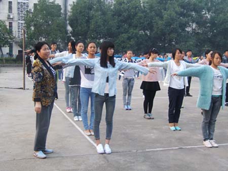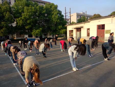 伴随着春天温暖的阳光,公管学子依然坚持着该系的特色晨训。 每天清晨六点半,“整齐的队形,响亮的口号、统一的健美动作”在我院排球场都可以看见这样震撼的场景。