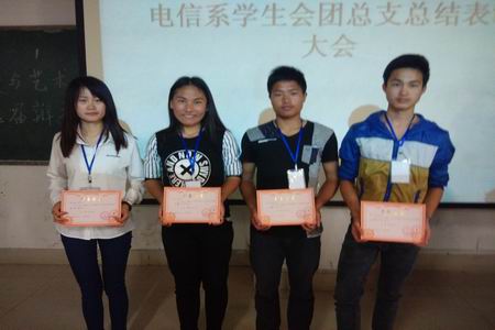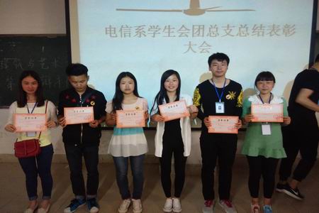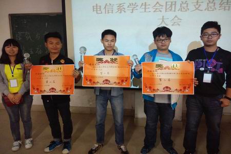 最后主席青松对这些优秀班级、团体颁奖,并发表了自己的感言:“付出终有回报,在付出的同时我们也充实了自己,锻炼了自己,实现了人生价值”。(电信系)