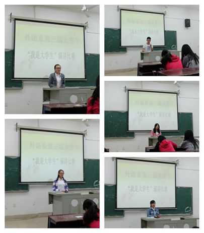 4月26日,外语系于主教楼318举行了“我是大学生”演讲比赛。由学工主任贺建良,辅导员周春红及外语系学生参加。比赛由学生蒋国玲主持。
