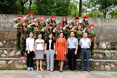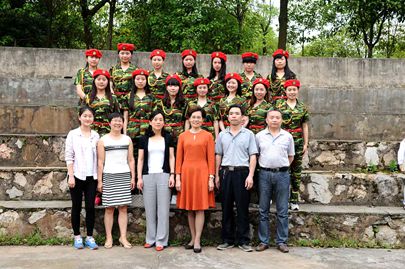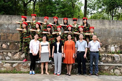 5月7日下午4:00整,外语系的歌舞节目《明天我上光荣榜》表演成员在系办前的羽毛球场与系主任刘燕、副主任肖付良、学工主任贺建良、辅导员周春红集体合影留念。