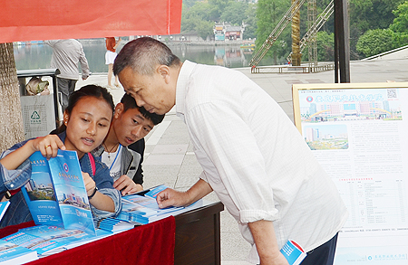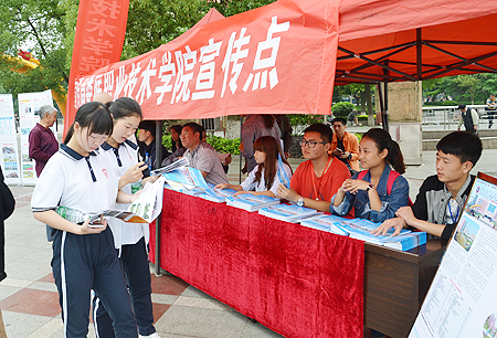 我院由院长雷立成带队,宣传统战部、招生就业处、中专教育部、各教学系均派出了师生参加活动,展出显示我院职业教育风采的展板8块,发放宣传资料1000余份,接待市民咨询3000余次。作为娄底唯一一所公办高职院校,我院展台吸引了大批家长和其他中职学校学生前来咨询。刘宏业、甘跃华在我院展台仔细观看了宣传资料,并与我院学生亲切交谈。