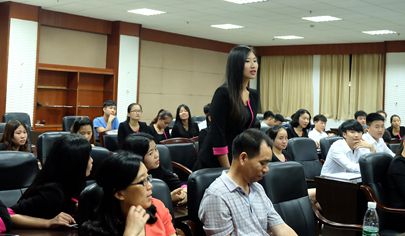 蒲总进一步完善了上海实习工作事宜,与大家一起分享了他的工作经验。在自由问答环节,同学们积极参与,踊跃提问,对福利待遇、吃住问题、工作分配、语言沟通等问题进行了咨询,蒲总也一一做出解答。蒲总强调,上海唐恩都乐始终把顾客利益与员工利益放在首位,对待员工工作十分关心,希望同学们能带着迎接挑战的心态去面对工作。