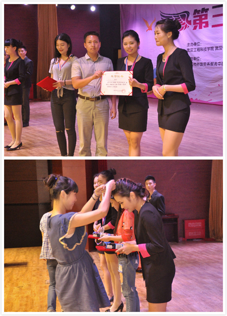 紧张激烈的角逐中,我院选手凭借优雅的台风、标准流利的口语、良好的心理素质和深情投入的演讲力克群雄,在强手云集、各路精英普遍发挥出色的情况下脱颖而出,取得多项好成绩,派出的参赛的选手和节目全部获奖,几乎包揽前三,总成绩傲居榜首!这是近年来外语系代表学院参加多省区同类型英语综合类大赛中创记录的好成绩。通过此次比赛,全场观众领略到了娄底职院选手的风采,感受到了娄职外语系的语魂,打响了娄职的名气。颁奖仪式上,大赛评审组领导为各获奖选手颁奖,我院外语系参赛指导教师张杨受邀担任颁奖嘉宾,上台为冠军得主丁思同学颁发荣誉证书、奖品,挂上光彩夺目的冠军奖牌。