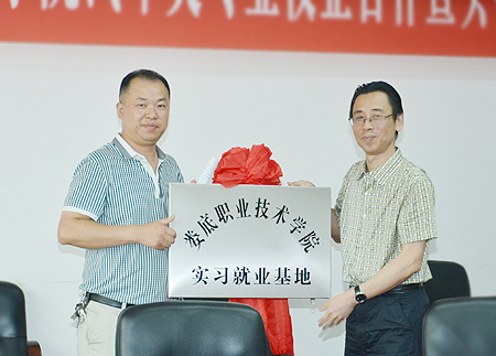 易爱良与八家企业代表签订了合作协议,龙伟、周志和向企业授予实习就业基地牌匾。根据协议约定,双方以“互相合 作、互利互惠、实现双赢、共同发展”为基本原则,互认挂牌,开展就业推荐、员工培训合作;开展订单培养,合作办学;联合开展技术合作,技术援助、学术研讨工作;进行实习、实训基地建设合作;互派挂职交流合作;开展教学、科研及产学合作。