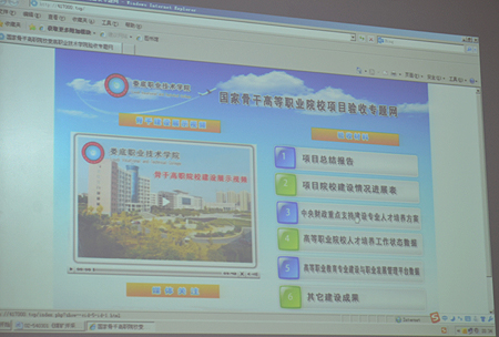 会上展示了项目建设成果展示视频、重点建设专业人才培养方案、课程标准、精品课程、精品教材、项目总结报告材料、媒体汇编等资料,与会领导围绕各成果展开讨论,提出了建设性意见与建议。(欧阳琦)