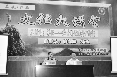 | 党委书记李文莲(左)主持学院文化大讲堂活动 |