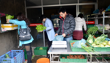 教职工在供应点选菜
