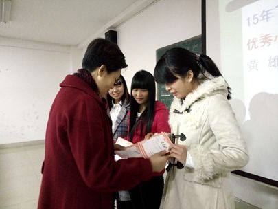 随着主持人的 “一声令下”,活动正式开始。活动第一项是对15年下学期英语课堂教学实训的优秀学生及优秀小组长进行颁奖,与会领导为获奖的同学颁发荣誉证书。