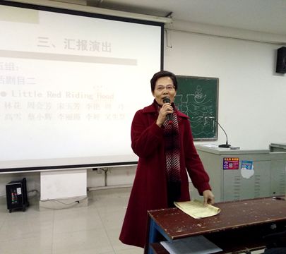 最后,刘主任作点评、总结,对两位“老师”评价相当高,选材得当,上课大方得体,姿态端正,课堂驾驭能力以及随机应变能力强,人文性与工具性相结合,调动了现场的气氛与同学们的积极性;对各组进行汇报演出的同学也是很满意,总体用了“妆容美,笑容美,服饰美”来形容。总结到最后时,刘主任引用学院院训?D?D?D?D“学以致用,自强不息”来告诉我们,要努力学习,好好学好英语,为将来步入社会找工作奠定基础。(易宏伟)
