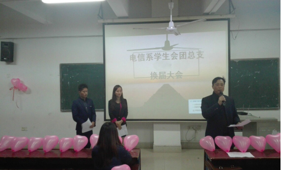 12月3日晚7:30,电信系学生会团总支在主教楼510举行换届大会,出席大会的有学工主任刘寿松、学生干事洪豆、13级学生会干部、14级新任部长、副部长以及15级新干事。