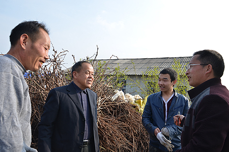 周意坚一行人来到曾玉华老师的特色果树实验基地“金手指葡萄庄园”,遇到了两名“客人”。一个是2012年曾到我院农民创业培训班学习的涟源石马山镇, 龙江村的吴胜文,他目前在家种植了七八亩葡萄,经常到中阳村向曾玉华老师请教技术问题,曾玉华老师还向他免费提供了200余株葡萄苗。吴胜文告诉我们,他们镇上南山村的刘细堂是我院2011级农民创业培训班学员,目前创业非常成功,种植了葡萄、水稻,养了鸡,被评为了涟源市的劳动模范。另一个“客人”是我院2013级工程造价1班的姜正平同学。姜正平告诉我们,他对农业种植非常感兴趣,自己主动来找曾玉华老师学技术,有一段时间就住在实验基地,跟着实践学习。“爸妈有点转不过弯来,但我已经想好了,一是农业发展很有前景,二是我对这个有兴趣,今后就希望做这个事!”姜正平是建筑艺术与设计系的团支部书记,对未来已经有了自己的想法。