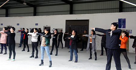 为全面贯彻落实《全民健身计划纲要》,切实提升我院教职员工身体素质,丰富教职工精神文化生活,增强教职工活力,突出“全民健身 健康快乐”主题,我院拟于5月举行全院广播体操比赛。3月30日,建艺系队率先开始了第九套广播体操的练习。3月31日,组织、审计、宣传、中专、纪委联合队,资产后勤队,机电系队,公管、公课部联合队也陆续开始投入训练。