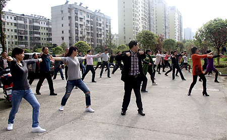 从60年代起,广播体操就在全国广泛流传,深受人们喜爱,不少教职员工表示,几乎是每天听着熟悉的广播体操音乐长大的。2011年8月8日,国家体育总局正式发布了第九套广播体操。新广播操最大的亮点就是加入了头部动作,采用了转头,头前屈、后屈相结合,可以有效改善头部血液循环、减轻颈椎病的症状,非常适合教师们锻炼。据计算,一天做两遍第九套广播操,9分多钟,消耗的能量在100-200卡路里之间,属中等强度的有氧运动,相当于跑了800米。在旋律优美的音乐伴奏下做操,也更加有利于缓解大脑疲劳,增强记忆力。