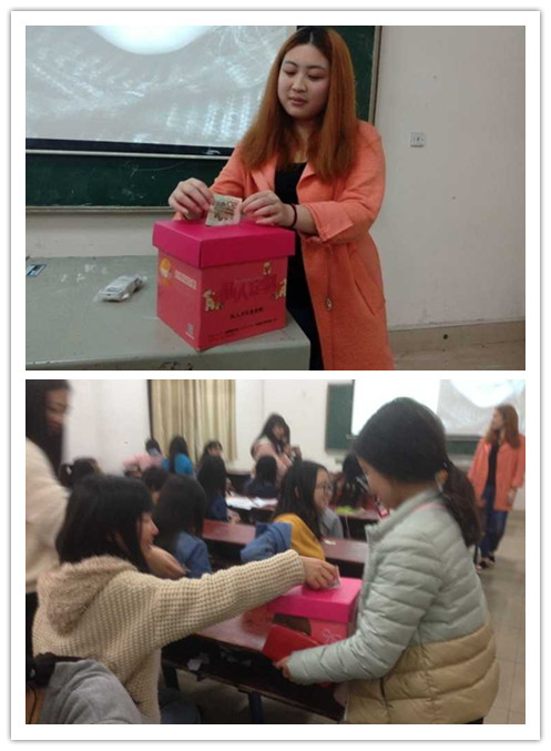 活动中,辅导员向班级同学强调了“一元钱,一份爱”活动的精神和理念,通过 PPT 放映的形式,进一步深化活动的开展;有的辅导员给同学们讲述了特困学生的生活情况,呼吁同学们积极帮助更多的特困学生;有的辅导员自制了募捐箱并起到了模范带头作用。
