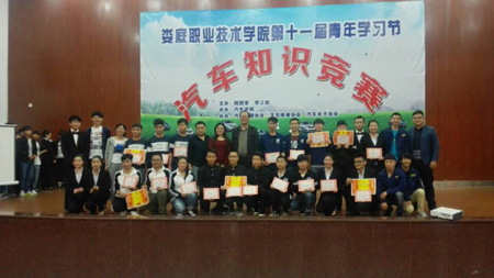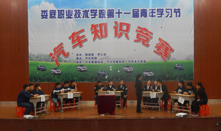 为了提高学生对知识的热爱与追求,中德诺浩汽车学院于2016年4月21日19:00在新培楼举行了一场汽车知识竞赛。参赛人员为汽车学院五个14级班级和五个15级班级的代表。出席本次比赛活动的嘉宾有汽车学院院长易爱良、学工处副处长刘轶中、财贸系学工主任杨娟、公共事务管理系学工主任申再林、资源系学工主任李飞轮、 汽车学院副院长苏志华、汽车学院副院长聂进、汽车学院胡显进老师及汽车学院专业老师、辅导员以及汽车学院全体学生。 比赛分为淘汰赛和攻擂赛两个环节,比赛所用题库将汽车各方面的知识分为必答题、抢答题和风险题。参赛选手各具实力,在比赛过程中保持着高度的专注力,抢答速度非常之快,答题积极主动,让全场观众为之紧张又禁不住为之欢呼雀跃。比赛过程中主持人以简单好玩的脑筋急转弯和汽车学院14级学生季凯的一首《海阔天空》将现场气氛推至高潮,一时间掌声与欢呼声经久不息。攻擂赛后学工处副处长刘轶中发表讲话,她在讲话中强调了此次竞赛活动组织难度大,但汽车学院将活动组织得很严谨有序且形式多样,同学们专业知识功底扎实,在擂台上表现得淋漓尽致,并给予了在场工作干部的辛勤工作极大的肯定。 最终比赛在各班的激烈角逐中圆满落幕,获得一、二、三等奖的班级分别为14中检四班、15服务一班、14服务一班,并有15检修三班、15电子一班以及 15检修二班获得优胜奖,刘轶中、易爱良、苏志华、李飞轮、杨娟、胡显进等老师分别为四个奖项的获奖选手颁发荣誉证书与奖状。 此次比赛既是一个交流平台,促进了汽车学院14级学生与15级学生之间的专业知识的相互交流,同时也展现了汽车学院良好的精神面貌,也激发了学生的学习兴趣与热情,让学生在比赛中学会团队合作并加深了对专业知识的掌握。(系宣传部)