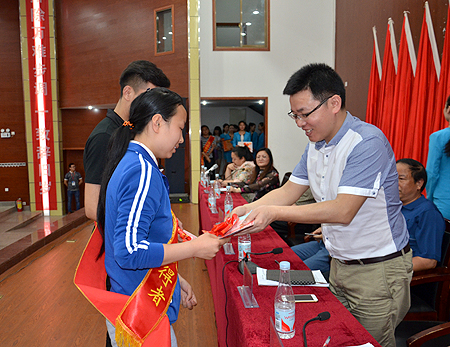 欧芳作2015年共青团工作总结报告。她指出,我院在五四运动97周年之际,回顾、总结过去一年的团学工作,表彰一批先进集体和个人,正是要让历久弥新的“五四”精神永远激励全院团员青年与时俱进,始终勇敢地站立在时代潮头。欧芳表示,在过去的一年里,学工处、院团委突出思想引领,狠抓大学生思想政治工作;突出成长服务,竭诚服务青年成长成才;突出素质提升,努力繁荣校园文化。这些成绩的取得,是学院党委行政正确领导、各职能部门和院系大力支持、全院各级团学干部和团员青年共同努力的结果。她勉励全院青年学子要始终保持蓬勃向上的朝气、开拓进取的锐气、争创一流的志气和革故鼎新的勇气,勤奋学习、努力工作,为学院建设发展贡献青春力量。
