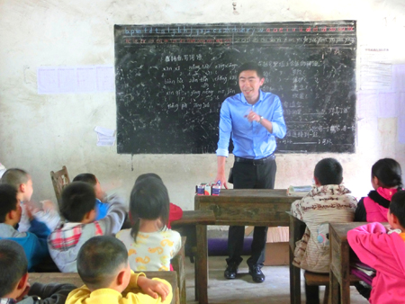 志愿者教孩子们唱歌