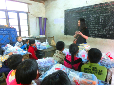 5月11日上午,我院中专部副主任石磊携教师和学生志愿者一行10人来到新化县白溪镇毛坪村小学看望贫困学生并进行捐赠。白溪镇东富中学罗校长得知情况后,立即赶赴捐赠现场,对志愿者一行表示诚挚谢意并全程陪同参与捐赠活动。