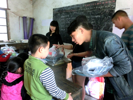 在临时教室里,志愿者们忙碌而有序的将带来的礼物馈赠给孩子们。15名学生每人领到了一个新书包、三套作业本、一套组合文具等学习用品。此外,中专部师生还为孩子们准备了书籍和羽毛球拍、乒乓球拍等体育用品,鼓励孩子们在认真学习之余加强锻炼,争取做一个德智体美劳全面发展的好学生。
