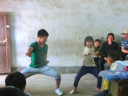 志愿者教孩子们打拳