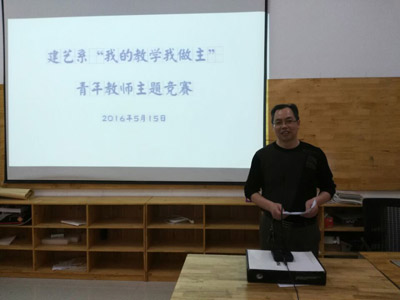 为了在青年教师中间宏扬正能量,培育社会主义核心价值观,增强青年教师的工作责任心、团体凝聚力,提高职业素养,促进青年教师教学能力、教学水平的提高,建艺系于5月16日下午举办了“我的教学我做主”青年教师主题竞赛。比赛分为教学展示和教学演讲两个环节,教学展示环节,选手就指定的教学资料进行工作思路、工作内容的评述;教学演讲环节,选手以自己教学工作中的重点、亮点、关注点为依据进行演说。建艺系所有青年教师参加了本次比赛。