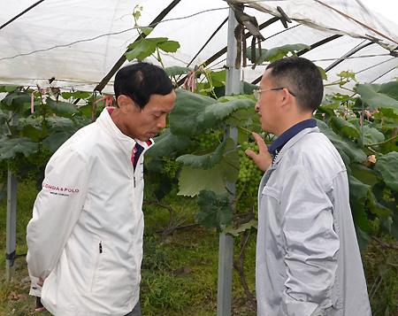 领导们对我院农林系在中阳村的特色果树实验基地“金手指葡萄庄园”等地进行了现场考察。(刘泱)