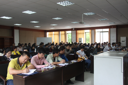 刘自斌介绍了我院基本情况,并表示,学院将尽心尽力抓好教学,搞好服务,抓好管理,以保证此次培训质量。他对参加此次的学员提出了三点意见:第一,在思想认识上,把这次培训作为提高自身业务水平和工作能力的平台,要在理论学习中提高实践能力,在实践中丰富理论知识;第二,在学习方法上,把现实结合作为提高学习效率的途径,讲究学习方法、坚持理实结合,提高学习效率;第三,在学习态度上,把身份转换作为达到思想学习效果的基础,要严守作息时间、遵守课堂纪律、讲究文明规范,为我院学生的健康成长释放出正能量,做出好榜样。