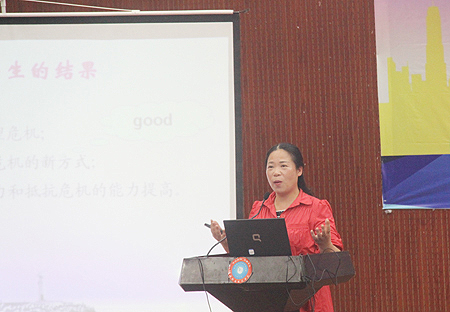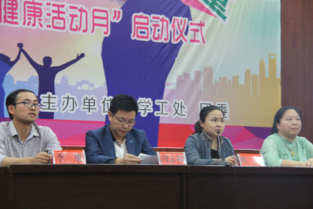 易瑜宣读《娄底职业技术学院第十一届“大学生心理健康教育月”总体活动方案》,就本次活动的主题、对象、时间、内容作详细讲解。她表示:此次心理健康活动由学工处牵头,各系部具体组织实施,将通过主题演讲比赛、主题班会、讲座、团队素质拓展训练、现场咨询等一系列形式开展。外语系15级应用英语班学生刘盛辉宣读了《第十一届大学生心理健康活动月主题倡议书》,表示将积极响应学院号召,做一个心理健康,举止文明的新时代大学生。