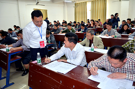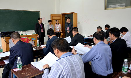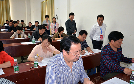全程电子监控录像、通讯设备关机屏蔽、禁止携带资料书本、不得徇私舞弊代考……5月27日下午两点半,一场严格而特别的测试在我院主教楼举行。娄底市100余机关单位的500多名党员干部参加测试,一同默写入党誓词,一同作答“两学一做”基础知识。娄底市委常委、组织部长、统战部长华学健,我院党委书记李文莲,娄底市委组织部副部长欧文安、袁若宁,娄底市直机关工委书记刘福高亲临考场巡考。我院正处级党员实职干部全体参考。