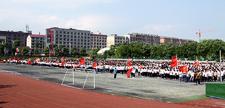 比赛现场全院学生列队站立