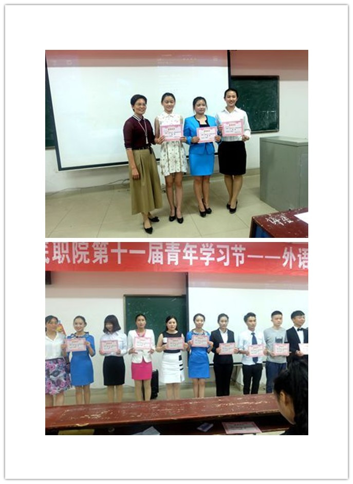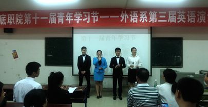 6月2日晚,由院团委、学工处主办,外语系承办的第十一届青年学习节暨外语系第三届英语演讲比赛在主教学楼610教室举行。担任本次大赛的评委有此次大赛的评委有系主任刘燕、教学主任肖付良、学工主任贺建良、教研室主任龚文峰、辅导员周春红、张扬及教学老师谢丹、谢杰、赵熹妮等。