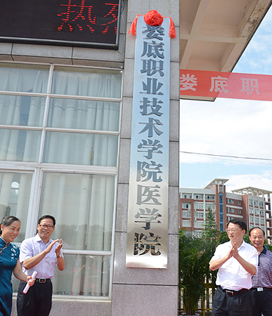 随后,在原娄底卫校校区,在各位嘉宾、我院师生代表的见证下,何文君、甘跃华为娄底职业技术学院医学院揭牌。仪式由李文莲主持,雷立成致辞。