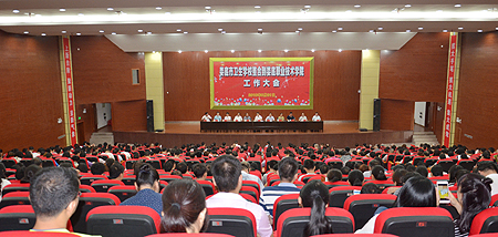 6月21日上午,艳阳高照,彩球飘舞,娄底市卫生学校整合到娄底职业技术学院工作大会在我院学术报告厅隆重举行。市委副书记何文君、市政府副市长甘跃华、市政协副主席吴合群、我院党委书记李文莲、院长雷立成、市委副秘书长朱贵阳、市政府副秘书长张宝忠、市教育局局长刘道阳、市卫计委主任罗琳、我院党委副书记王健龙(原娄底卫校党委书记)、党委委员、副院长金建雄(原娄底卫校校长)在主席台就座,部分部办委局负责人,娄星区、娄底经济开发区及市区部分单位代表,我院全体教职员工及学生代表出席大会。