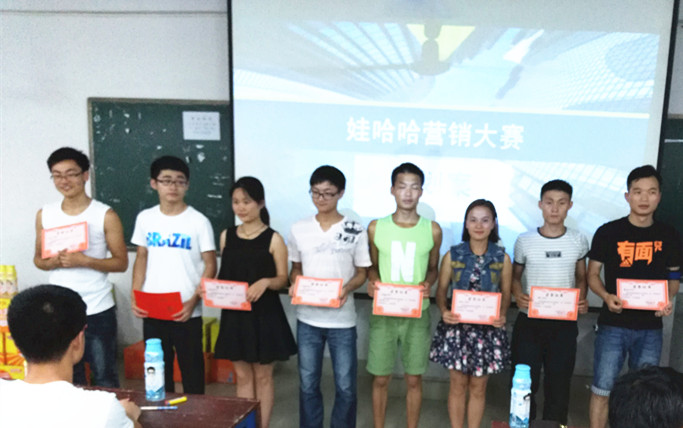 为了增强市场营销专业学生的营销技能、提高全院学生的营销意识,由财贸系主办、市场营销教研室承办、娃哈哈公司赞助的“2016年营销技能大赛”决赛于6月20日晚7:30在主教楼210教室举行。财贸系总支书记蒋美群、市场营销教研室主任陈志雄、专业教师刘卫国、吴梦华及娃哈哈公司代表罗超出席并担任本次决赛的评委。