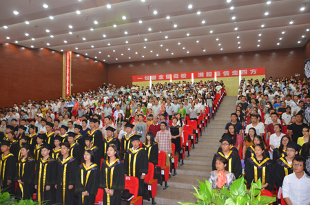 院长雷立成在致辞中向学有所成、即将告别母校的毕业生们致以最热烈的祝贺和最诚挚的祝福,向辛勤培育他们的老师表示衷心的感谢。他向全体毕业生殷切寄语:诚实做人,踏实做事;坚持学习,永不满足;关注母校,支持母校。他引用印度诗人泰戈尔的诗句“无论黄昏把树的影子拉得多长,它总是和根连在一起;无论你走得多远,我的心总是和你在一起”,告诉毕业生:“无论你们人在哪里,母校永远挂念你们,永远是你们的坚实后盾!”