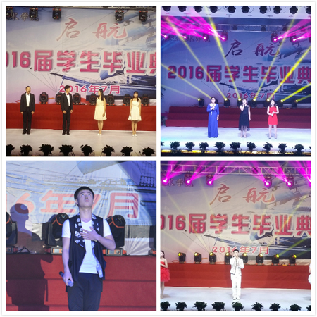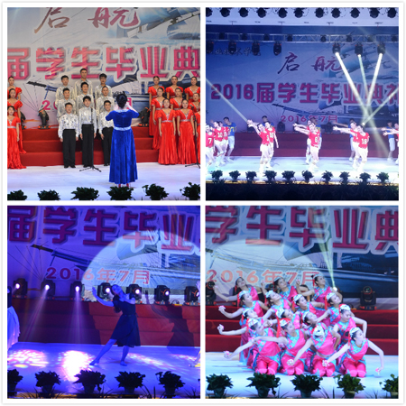 毕业典礼后举行了文艺表演,其中既有体现母校浓浓不舍之情的独唱《这就是爱》,又有对毕业生寄予殷切希望的合唱《明天会更好》、集体舞《恰同学少年》,体现我院毕业生青春风采的集体舞《给力青春》、《青春与梦想》。教师表演的三重唱《祝你平安》,是老师对即将远行的孩子的殷切嘱托,毕业生表演的三人舞《曾经》,是她们站在离校的关口,回望三年青葱岁月的思绪畅想。最后的集体舞蹈《不说再见》,台上台下歌声掌声欢呼声连成一片,是母校为即将走入社会的毕业生们奏响的壮行曲,从这一天起,同学们将带着母校的祝福,带着师生的鼓励,开启他们人生新的旅程。