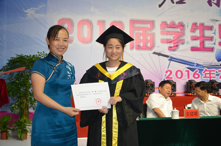 党委副书记王健龙宣读了2016届优秀毕业生表彰决定,党委书记李文莲为省级优秀毕业生颁发荣誉证书,院长雷立成为优秀毕业生代表颁发毕业证书,全体与会院领导为优秀毕业生颁发荣誉证书。我院2016届毕业生在校三年中,努力学习,奋斗不辍,有163人光荣加入中国共产党,6人获得国家奖学金,200人获得国家励志奖学金,46人获得院级奖学金,40人获得湖南省优秀毕业生称号,227人次获得院级三好学生称号,290人获得院级优秀干部称号,32人次获得国家、省级技能竞赛优异成绩。他们是“学以致用自强不息”这一娄职院训的最真实写照,是娄底职院立德树人,教书育人这一宗旨的最完美回报。