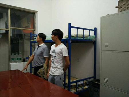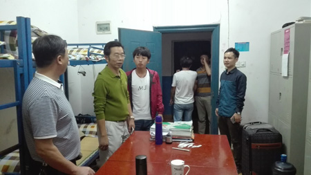 老师们正在检查寝室设施