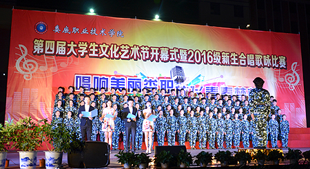 本网讯 10月16日晚,娄底职院“唱响美丽娄职放飞青春梦想――第四届大学生文化艺术节开幕式暨2016级新生合唱歌咏比赛”在该院文化广场隆重举行。