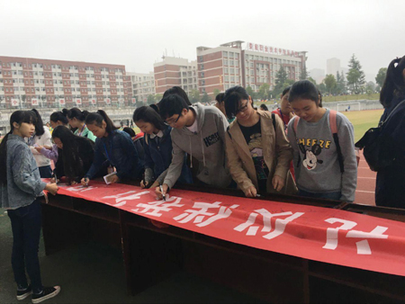 启动仪式上,学生科副科长谢跃辉带领全体新生集体宣誓,学生科科长王冬青对2015级“文明礼仪伴我行”系列活动进行了总结并宣读了各项活动的获奖个人和集体。最后,师生代表在横幅上签字、表决心。