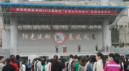 10月24日清晨,娄底职院医学院校区2016级新生“文明礼仪伴我行”活动仪式在田径场启动。党委委员、副院长金建雄、医学院校区领导肖建泳出席了仪式,全体新生班主任以及2016级2000多名新生参加了启动仪式。