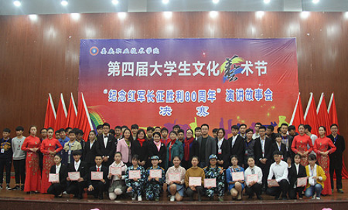 演讲故事会共有126名学生参加了初赛、复赛,13名选手脱颖而出进入决赛。在比赛中,选手们向全体听众讲述了一个个感人肺腑、可歌可泣的长征革命故事,选手们或慷慨激昂、或娓娓道来、或声情并茂,一段段革命烈士的奋斗史一次次在观众和评委眼前掠过、耳畔响起。同学们从实际出发,结合自己的体会,诠释了对红军长征途中克服困难和积极向上精神的理解和感受,他们端庄自然的仪态、饱满充沛的情感、抑扬顿挫的声音赢得同学们阵阵热烈的掌声。
