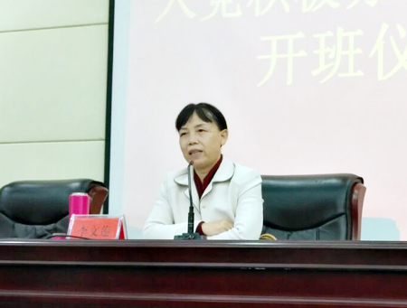 开班仪式后,李文莲书记为大家讲党课。讲课的主题是理想信念教育。李书记从为什么要入党,共产党与其他组织的区别,如何成为合格党员三个方面进行宣讲,联系实际,深入浅出,生动有趣。学员们学习得十分认真,并与李书记积极互动,学习效果良好。